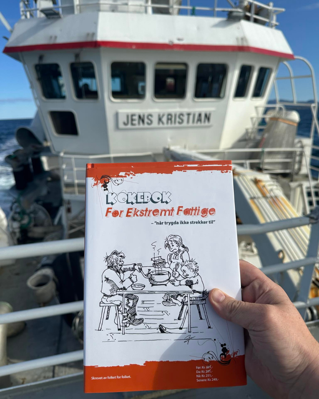 – Ideen kom i et lystig lag, forteller Jens Kristian Kristoffersen, fiskebåtreder og nå kokebokforfatter. Det var hans drøm å få til boka, «Kokebok for ekstremt fattige – når trygda ikke strekker til».